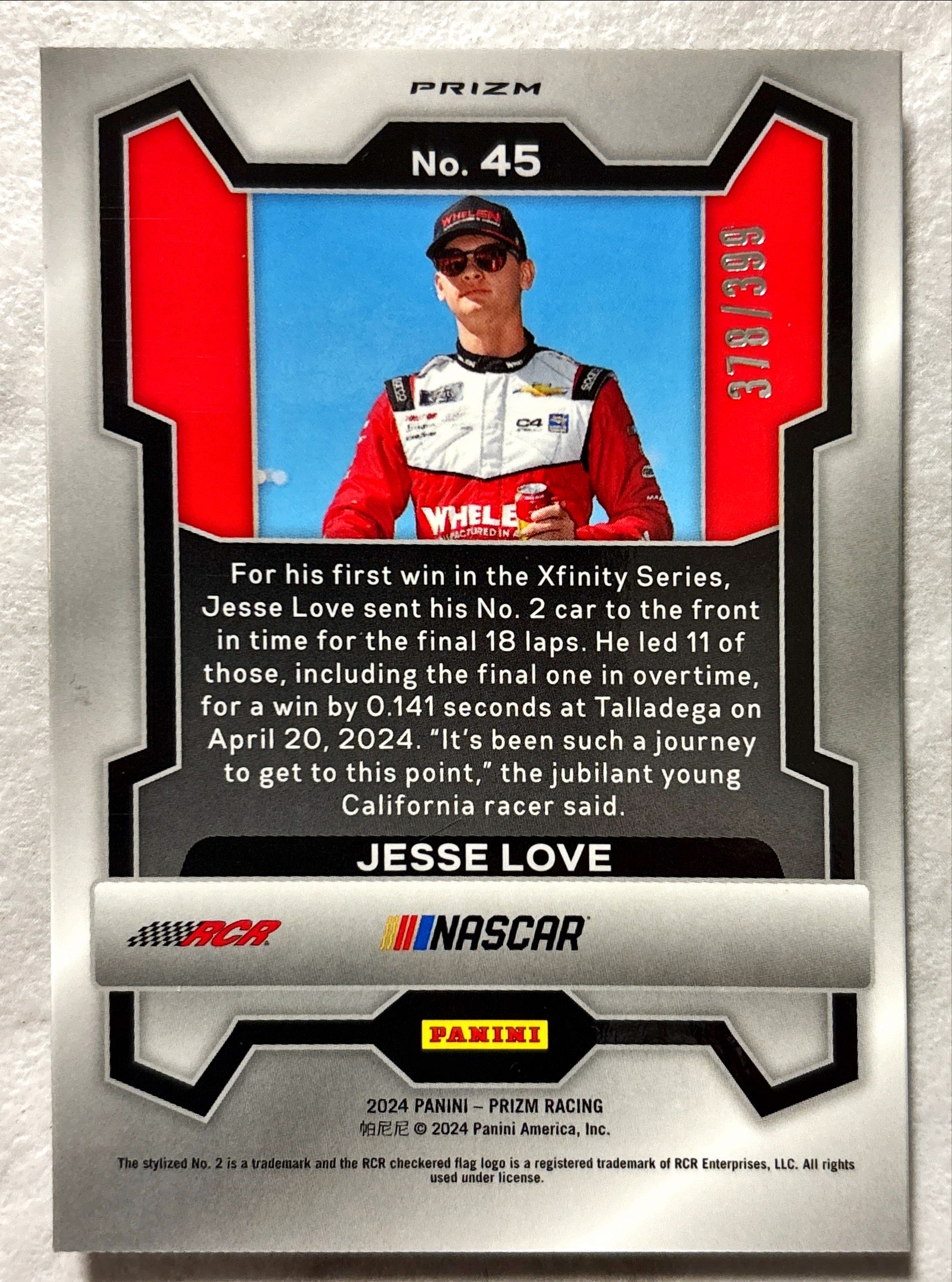 NASCAR - Jesse Love - 2024 Panini Prizm Racing White Sparkle Prizm /399