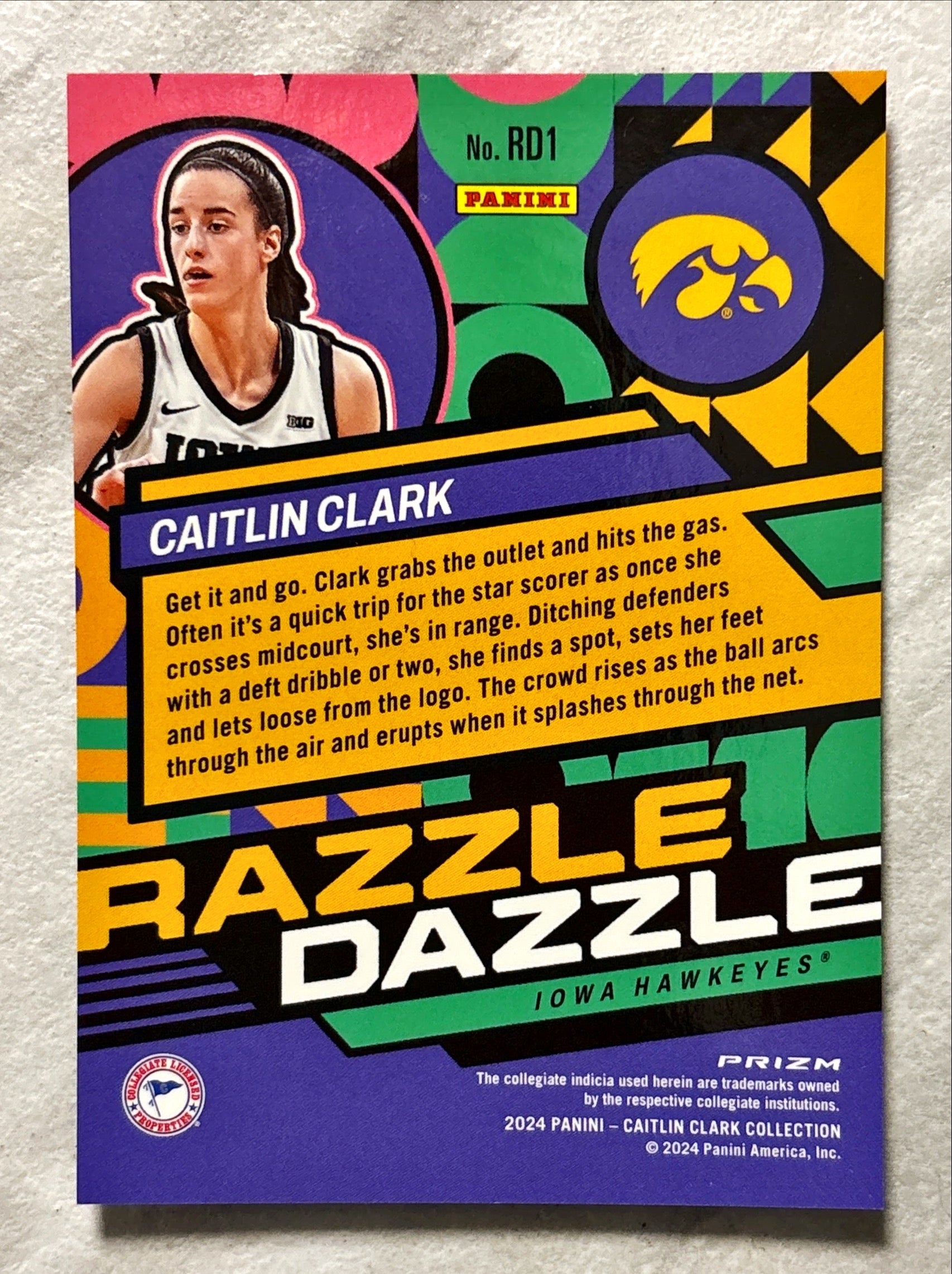 Rare Razzle Dazzle PRIZM (#RD1) insert card of Caitlin Clark!